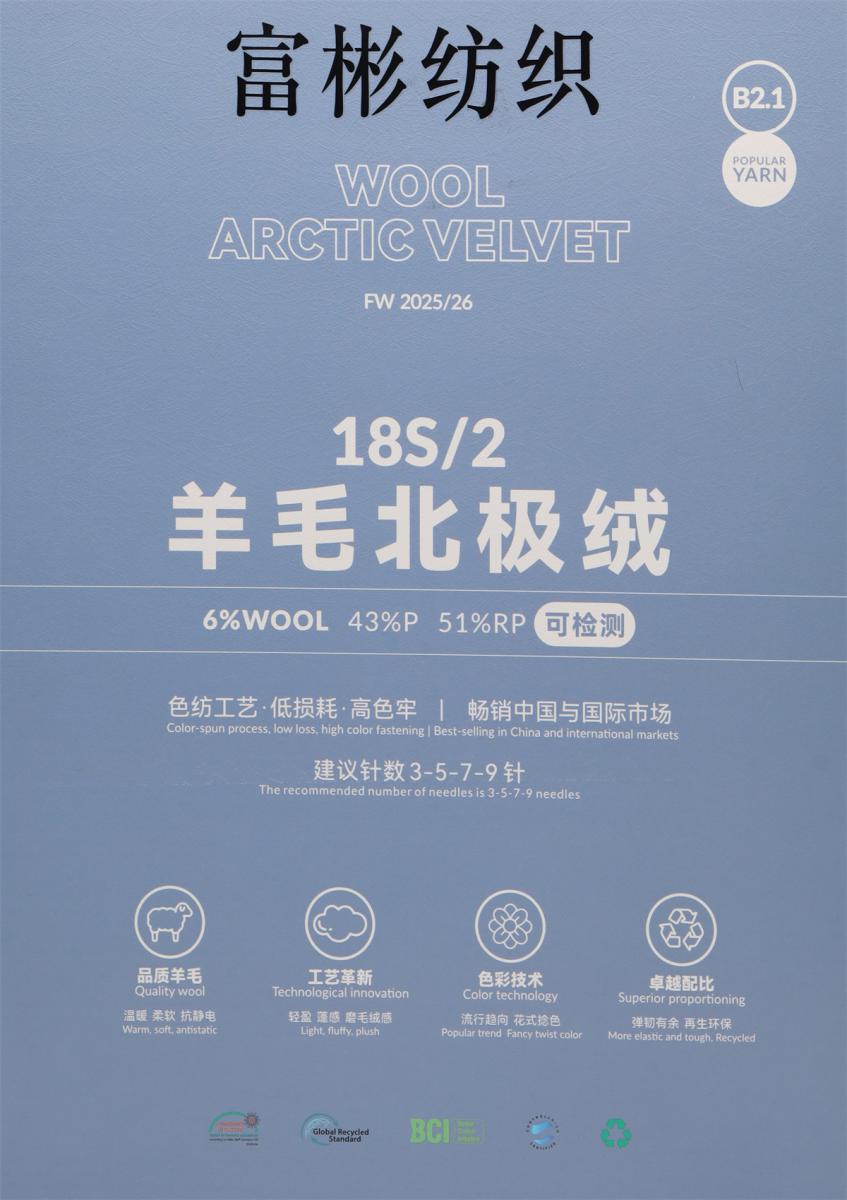 成分:51%再生涤纶 15%涤纶 28%PBT 6%羊毛